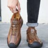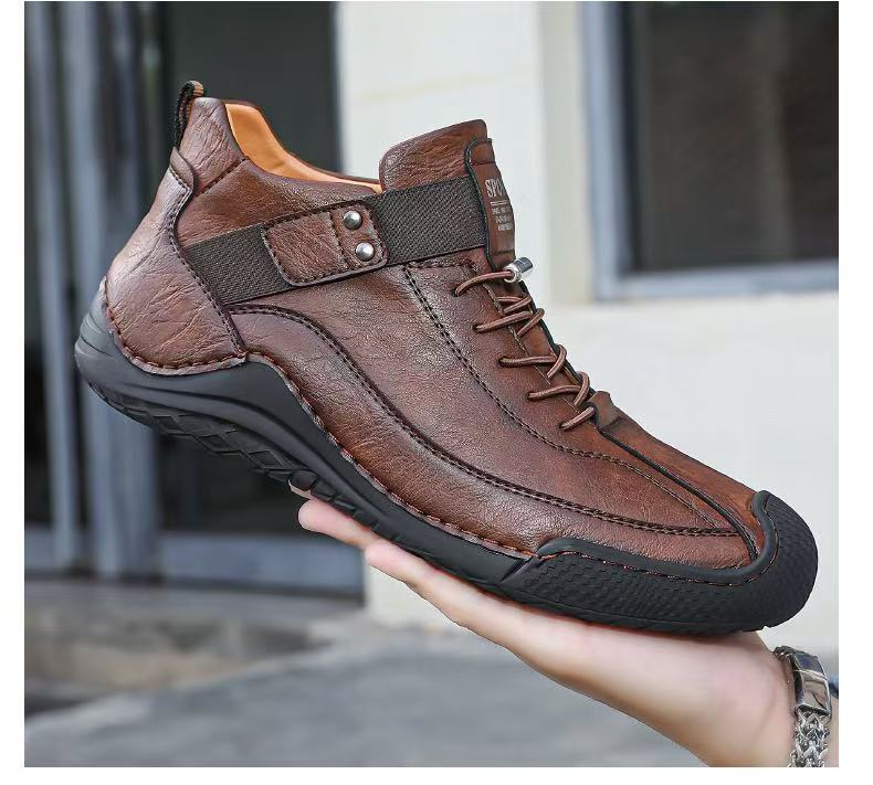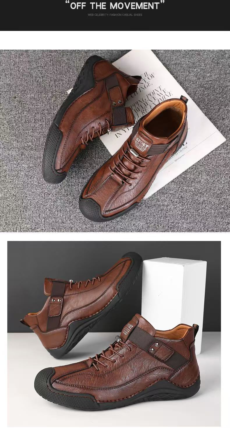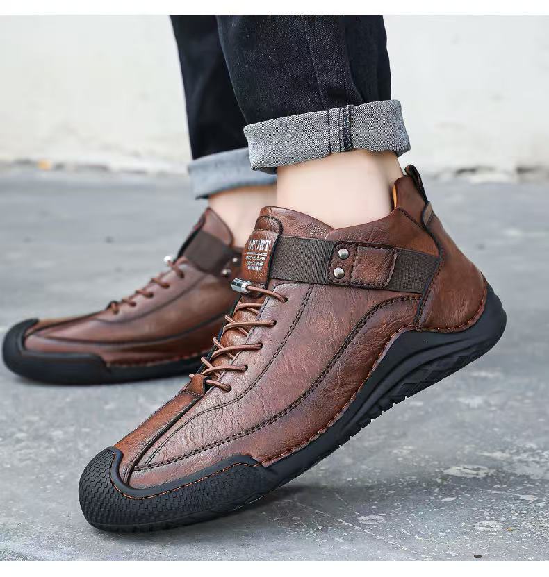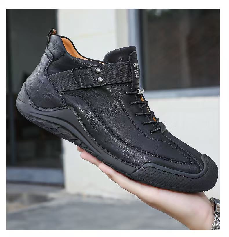 These European Style Men’s shoes Outdoor High Top Loafers are crafted with pig leather and rubber for durability and comfort. Featuring anti-slip, lightweight, and breathable designs, they suit various seasons and activities.They are available, offering flexibility for personal style. The shoes come in sizes 38-45, ensuring a perfect fit for every user.