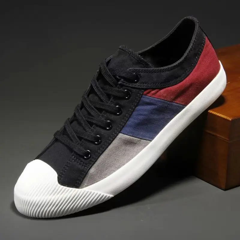 Classic mixed-color men’s canvas shoes with excellent breathability, crafted from high-quality rubber and polyester materials. Featuring a low lace-up design, these casual sneakers are versatile for all seasons and offer six color options. The product is quality-checked before shipping, ensuring durability and customer satisfaction.